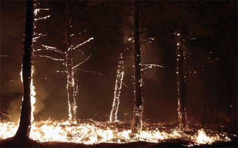 Than hồng từ vụ cháy rừng tỏa sáng rực rỡ tại một khu rừng ở Tabuyo del Monte, gần Leon, Tây Ban Nha. Ảnh GettyImages