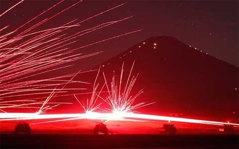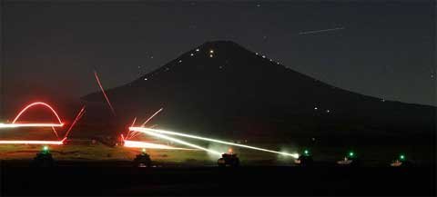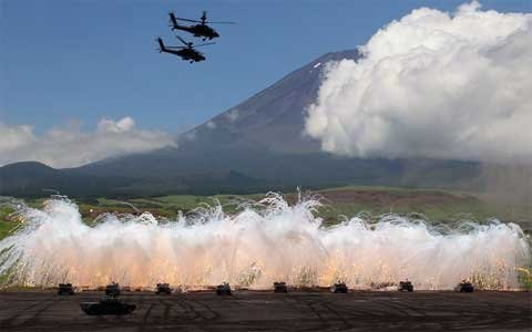 Lực lượng phòng vệ Nhật đã tổ chức cuộc tập trận bắn đạn thật hàng năm dưới chân núi Fuji ở khu Shizouka. Cuộc tập trận mở cửa cho công chúng xem và ước tính có 20.000 người theo dõi.