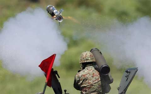 Một thành viên của Lực lượng phòng vệ dùng rocket chống tăng cầm tay trong cuộc tập trận.
