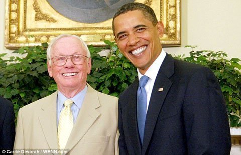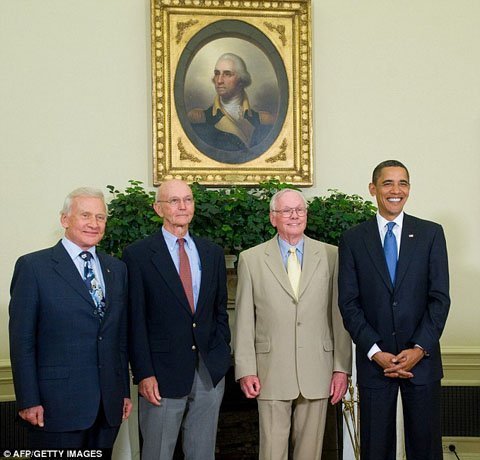Ông cùng với các thành viên phi hành đoàn Apolo 11 chụp hình với Tổng thống Mỹ Barack Obama trong dịp kỷ niệm 40 năm đặt chân lên mặt trăng.