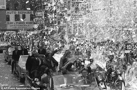Các nhà du hành vũ trụ được chào đón sau khi trở về từ mặt trăng vào ngày 14 tháng 8 tại Manhattan.