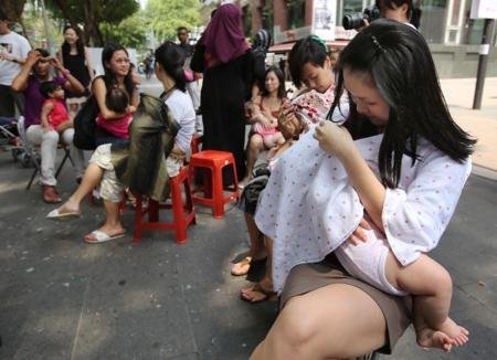 Nếu có mặt tại đường Orchard, Singapore vào trưa 25/8, bạn sẽ được chứng kiến một hình ảnh vô cùng độc đáo đó là hơn 15 bà mẹ "bỗng dưng" ngồi xuống cho con bú trước mặt mọi người trong khoảng 20 phút.
