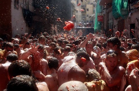 Dưới đây là một số hình ảnh về lễ hội Tomatina, một trong những lễ hội ném hoa quả lớn nhất châu Âu, vừa diễn ra tại ngôi làng Bunol, gần Valencia, Tây Ba Nha: