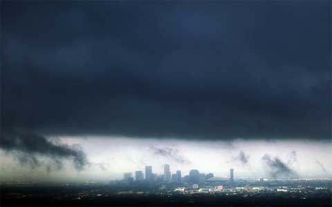 Đường chân trời của New Orleans, Mỹ nằm dưới đám mây bão sau bão Isaac.