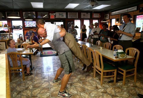 Một chủ tiệm bánh pizza ở Mỹ là Scott Van Duzer đã có một hành động thật bất ngờ vào ngày hôm qua, đó là bế bổng Tổng thống Barack Obama khi ông dừng chân tại tiệm bánh này.