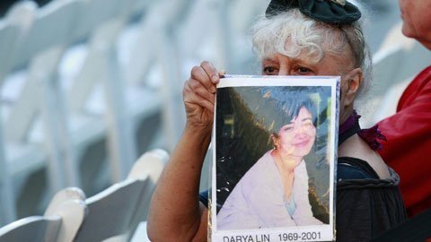 | Một phụ nữ giơ cao ảnh một nạn nhân trong vụ khủng bố tấn công tòa tháp đôi ở New York. (Ảnh: Reuters) |
