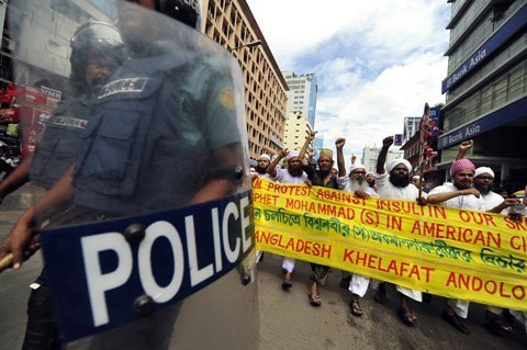 Cộng đồng Hồi giáo ở Bangladesh cũng tổ chức biểu tình phản đối trước cửa sứ quán Mỹ tại Dhaka.