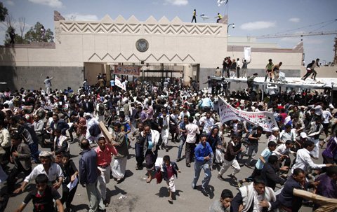Người biểu tình tức giận tràn vào sứ quán Mỹ tại Thủ đô Sanaa của Yemen.