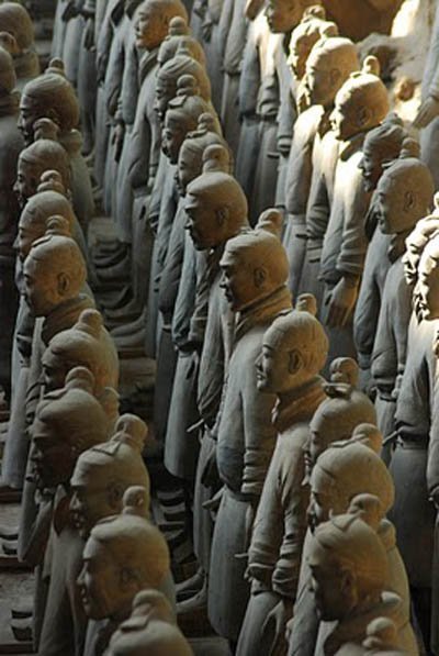 Có hơn 8.000 bức tượng đàn ông và ngựa bằng đất nung. Mỗi một bức tượng có một vẻ riêng và được nặn một cách khéo léo bằng tay từ năm 221 TCN.