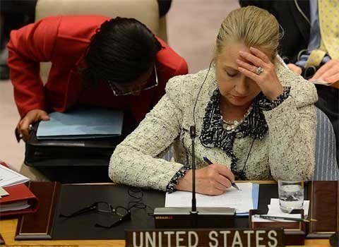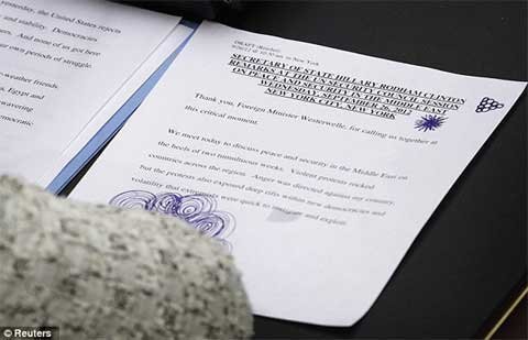Hôm 26/9, Ngoại trưởng Hillary có bài phát biểu về Trung Đông, nhưng tờ giấy in bài phát biểu còn thừa những khoảng trắng đã được trang trí bằng một ngôi sao, một loạt vòng tròn và một loạt hình xoáy ở cuối tờ giấy.