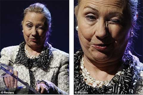 Ngoại trưởng Hillary còn làm mặt hài trong bài phát biểu về khủng hoảng AIDS vào cuối ngày.