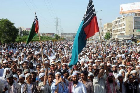 | Người Hồi giáo biểu tình tại Karachi (Pakistan) phản đối bộ phim sản xuất tại Mỹ có nội dung báng bổ đạo này. (Ảnh: THX) |
