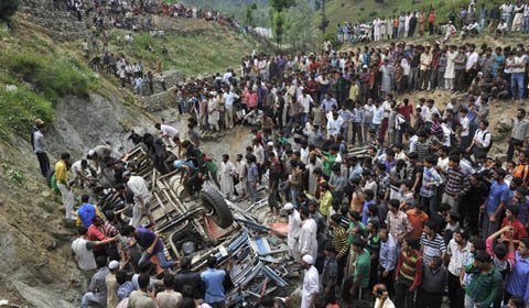 Một học sinh thiệt mạng và 52 người khác bị thương sau khi chiếc xe chở học sinh đâm vào một hẻm núi ở Kashmir. (Ảnh: Getty Images)