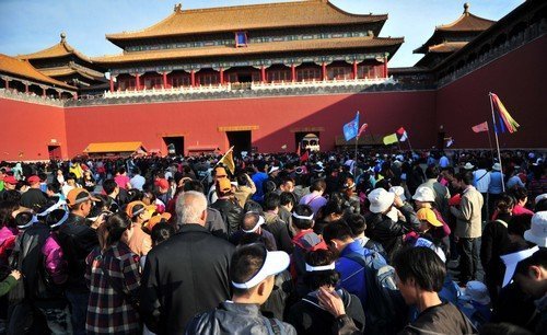 Cố Cung hay Tử Cấm Thành ở Bắc Kinh từ lâu đã là địa điểm hấp dẫn khách du lịch. Chỉ riêng hôm thứ Ba, nơi này đã đón nhận 180.000 khách, gấp 6 lần so với những ngày bình thường đông khách.