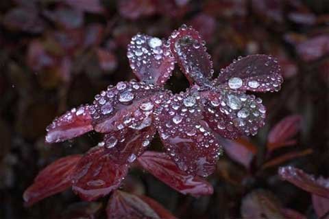 Giọt mưa đọng trên lá cây tại bắc Vancouver, British Columbia.
