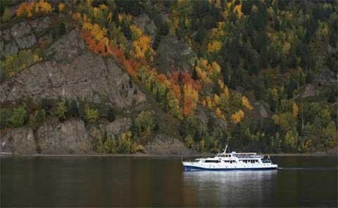 Một con tàu du lịch đi qua rừng taiga Siberia