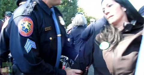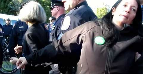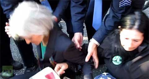 Một đoạn phim đăng trên YouTube cho thấy cảnh sát đẩy Stein và Honkala tránh ra khi họ cố tiến hành một cuộc biểu tình ngồi.