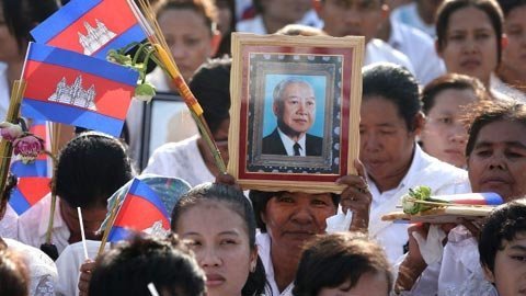 | Người dân Campuchia đón linh cữu cựu quốc vương Norodom Sihanouk. (Ảnh: Getty) |