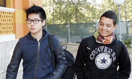 Kim Han-sol (trái) tại trường United World College ở Bosnia. (Ảnh: Rex Features)