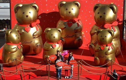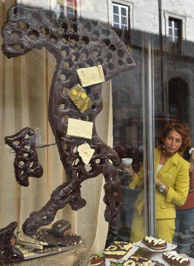 Du khách chụp ảnh trước những linh vật của một hãng socola trong lễ hội Socola châu Âu 2012 tại thị trấn Perugia, miền trung nước Ý vào ngày 21/10/2012.