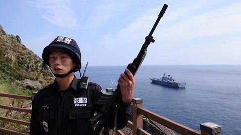 Binh sỹ Hàn Quốc trên quần đảo Dokdo/Takeshima. (Ảnh: Dong-a Ilbo) |
