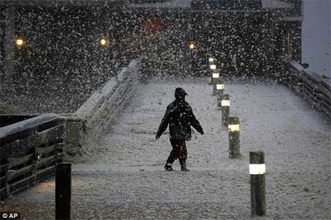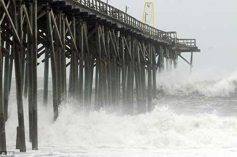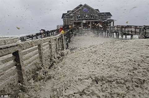 Các nhà dự báo cho biết, "trận bão hiếm" có thể đưa tới những đợt sóng chết người ập vào bờ biển trung Đại Tây Dương, cảng New York và Long Island Soud khi nó đổ bộ vào Mỹ trong ngày hôm nay.