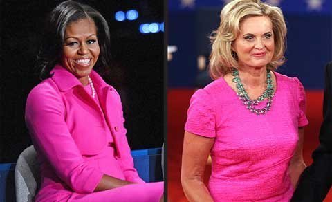 Vì sao vợ Romney, Obama cùng mặc váy hồng
