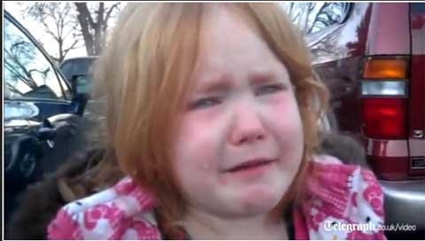 Bé gái Abigael Evans, 4 tuổi, khóc nức nở và nói "mệt mỏi vì Bronco Bamma và