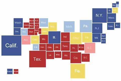 | Sơ đồ ủng hộ của các bang đối với hai ứng viên trên toàn nước Mỹ. Theo đó, bang