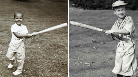 Đậm chất Mỹ: Một Obama nhỏ bé đang vung gậy bóng chày ở Hawaii, còn Romney 6