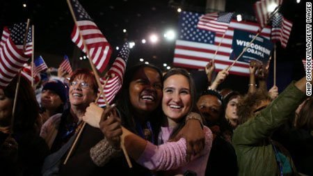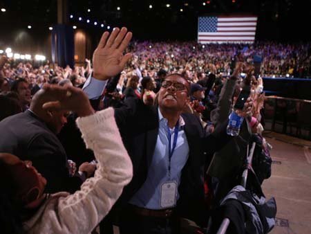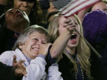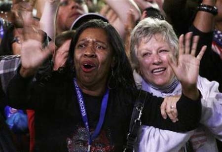 Những người ủng hộ Obama không giấu nổi xúc động khi ông giành được ít nhất 303 phiếu đại cử tri.