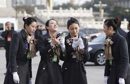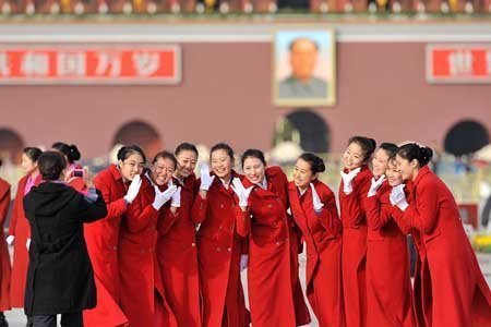 Họ là những nhân viên lễ tân phục vụ, phóng viên tới đưa tin về đại hội đảng Cộng sản Trung Quốc lần thứ 18.