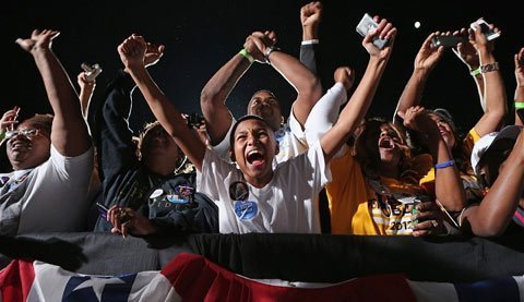 Bốn năm đã trôi qua và sự thay đổi thực tế đã đến với nước Mỹ, khi ông Obama vươn tới một chiến thắng trước đối thủ Mitt Romney ở vị trí dẫn đầu một liên minh tiến bộ mới gồm phụ nữ, các cộng đồng thiểu số và những người trẻ tuổi.