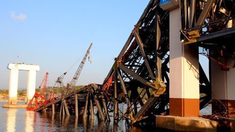 | Một cây cầu bị sập trong trận động đất hôm 11/11 ở Myanmar. (Ảnh: THX) |