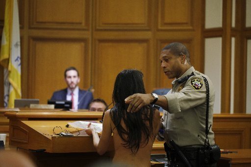 Cô gái Gypsy Taub đã cổ động cho 'tự do cơ thể' và cởi áo tại Tòa Thị chính. Cô bị bắt ngay sau đó và bị đuổi ra ngoài cơ quan này. |