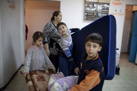 Những em nhỏ Israel xuống hầm trú ẩn ở Netivot, Israel. (Ảnh: Getty Images)