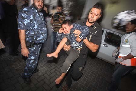 Một em nhỏ Palestine bị thương sau trận không kích của Israel tại phía bắc Dải Gaza. (Ảnh: Reuters)