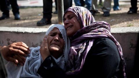 | Người Palestines khóc thương thân nhân thiệt mạng do các trận không kích của Israel. (Ảnh: THX) |