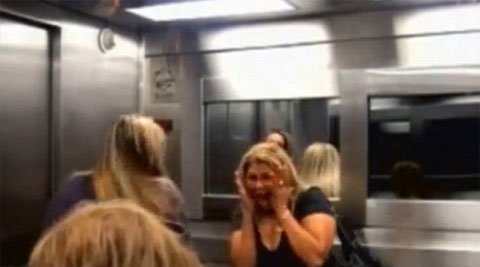 Đứng trong thang máy đèn sáng, vị khách chuẩn bị trải qua trò đùa tinh quái.