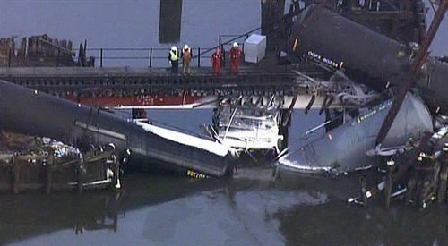 Theo hãng tin AP, sáng 30/11, một cây cầu đường sắt bắc qua sông Mantua ở New Jersey (Mỹ) bất ngờ sụp xuống, khiến một số toa của đoàn tàu chở hóa chất độc hại đang đi qua, bị trật bánh.