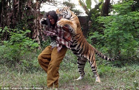 Không có gì lạ thường khi con người có những cử chỉ thân thiết với động vật tuy nhiên vấn đề lại hoàn toàn khác khi đó là một con hổ cái nặng tới 171,5kg.