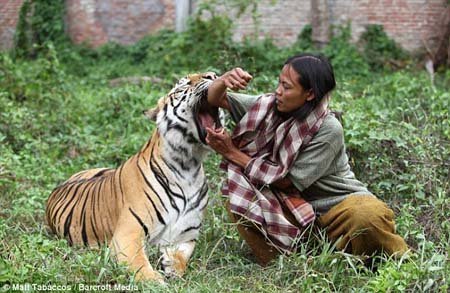 Anh thường xuyên ngủ, chơi đùa và "chiến đấu" với con hổ Bengal khổng lồ này.