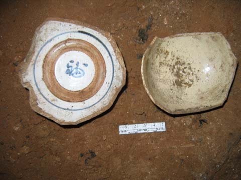 Theo các nhà khảo cổ, đây là chiếc bát có niên đại khoảng thế kỷ XV thuộc dòng gốm Chu Đậu, tỉnh Hải Dương. Chiếc bát còn lại, chân thấp, men màu trắng không có hoa văn. Cả hai bát đều có vết vỡ ở phần miệng. Có dấu hiệu di tích mộ đã bị xâm hại trước đó với mục đích lấy những vật tùy táng