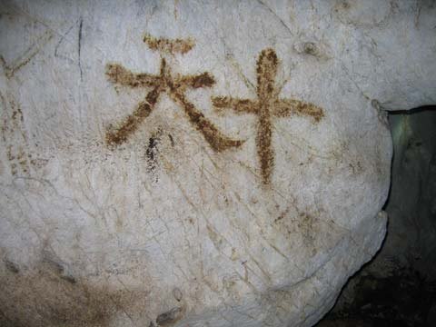 | Chữ Hán “Thiên thập” khắc trên vách núi. |