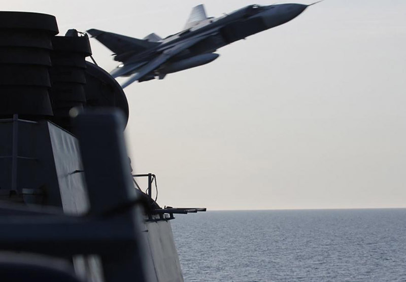 Các chiến đấu cơ Su-24 của Nga không mang vũ khí khi bay sát tàu Mỹ, và USS Cook cũng không thấy người Nga định thả một tên lửa xuống tàu.