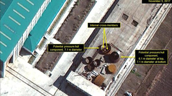 Những bức ảnh mà vệ tinh chụp được trong tháng 11 về một xưởng đóng tàu của hải quân Triều Tiên cho thấy nước này đang gấp rút đóng một tàu ngầm mang tên lửa đạn đạo.