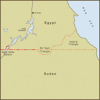 Nguồn cơn câu chuyện bắt nguồn từ một hiệp định ký năm 1899 khi người Anh đặt ách đô hộ lên cả Ai Cập và Sudan. Năm 1899, một đường biên giới ở phía bắc Sudan đã được người Anh đo đạc và vẽ tại kinh độ 22. Đó là một đường thẳng tịnh tiến về phía đông, hướng ra Biển Đỏ. Theo đường biên giới này, Ai Cập sẽ kiểm soát vùng tam giác Hala’ib trong khi Bir Tawil thuộc về Sudan. Tuy nhiên, cách vẽ đường biên giới như vậy của Anh gặp một vấn đề nhỏ.