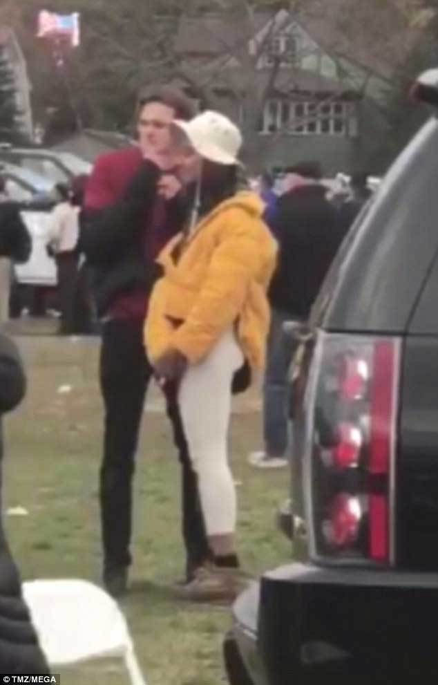 Theo video được đăng tải trên TMZ, thiếu nữ 19 tuổi nhà Obama đã kéo tay, ôm và hôn một anh chàng đẹp trai, hiện chưa rõ tên tuổi ở ngoài sân vận động Yale Bowl.