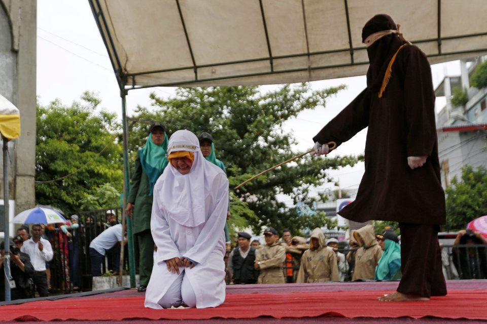 Một cô gái trẻ cùng 12 người khác ở Aceh, Indonesia, đã bị phạt roi giữa công chúng vì vi phạm luật Sharia.