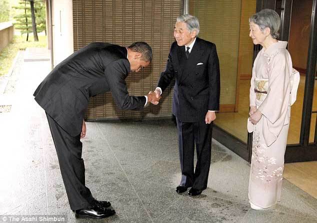 Kiểu cúi chào của ông Obama đã gây bão khi cử chỉ này bị coi là biểu hiện kém cỏi của nước Mỹ. Tuy nhiên, đó không phải là lần đầu ông Obama làm như vậy. Bảy tháng trước đó, ông Obama đã cúi người trước Quốc vương Ảrập Xê-út tại Hội nghị G20 diễn ra ở London.